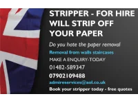 Hate paper stripping,I offer services to strip off for you,to the public,to decorators who need to get in front of work, also for plasterers who need to get in front of work loads, also offer cleaning services too.